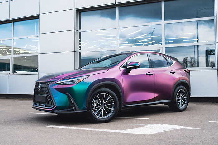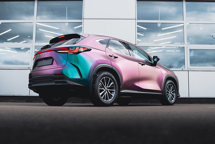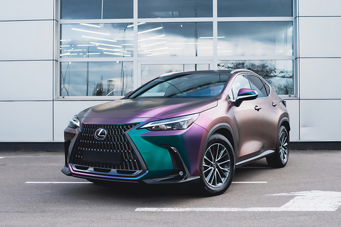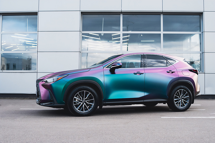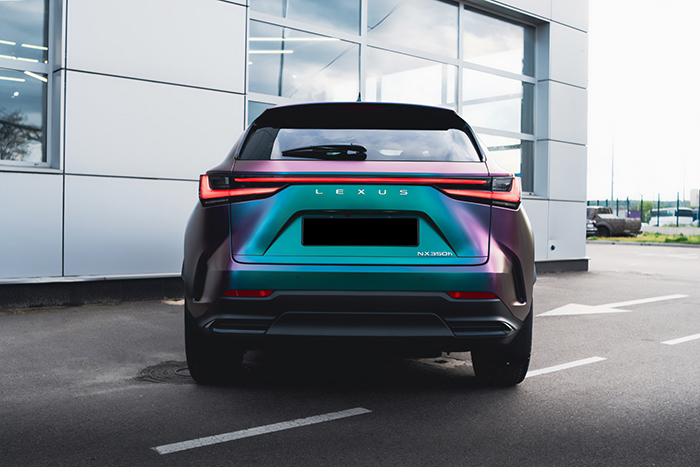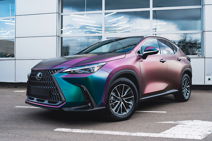 Lexus NX350h dán đổi màu Diamond Nebula chuyển sắc giữa tím, xanh ngọc và xanh dương