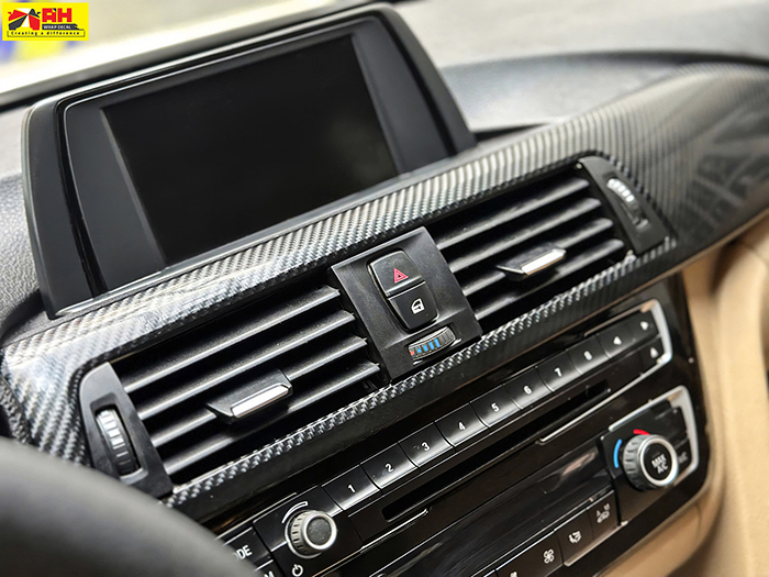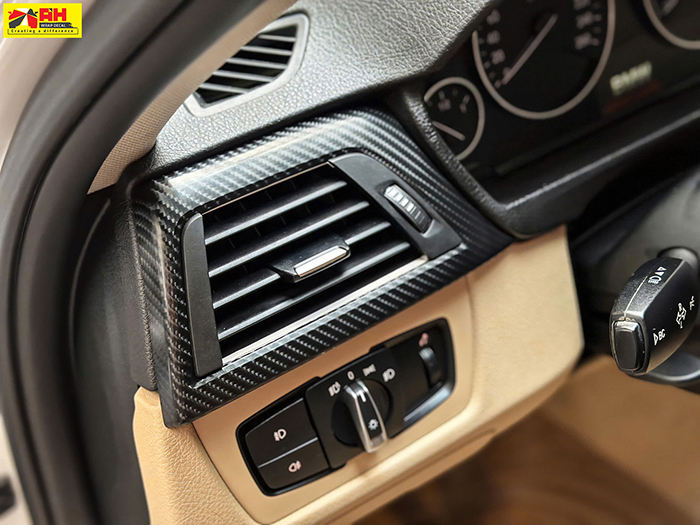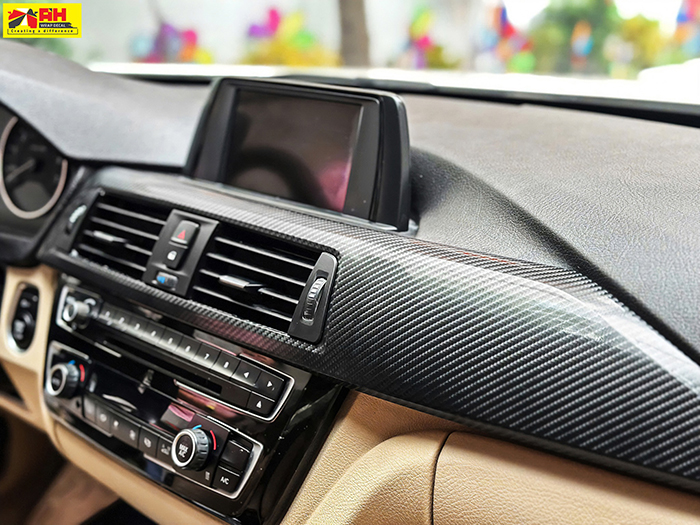 Nội thất BMW dán carbon mờ (Matte Carbon Fiber)